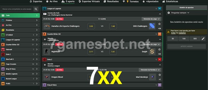 A aposta 7xx oferece aos jogadores a experiência mais conveniente de apostas em eSports!